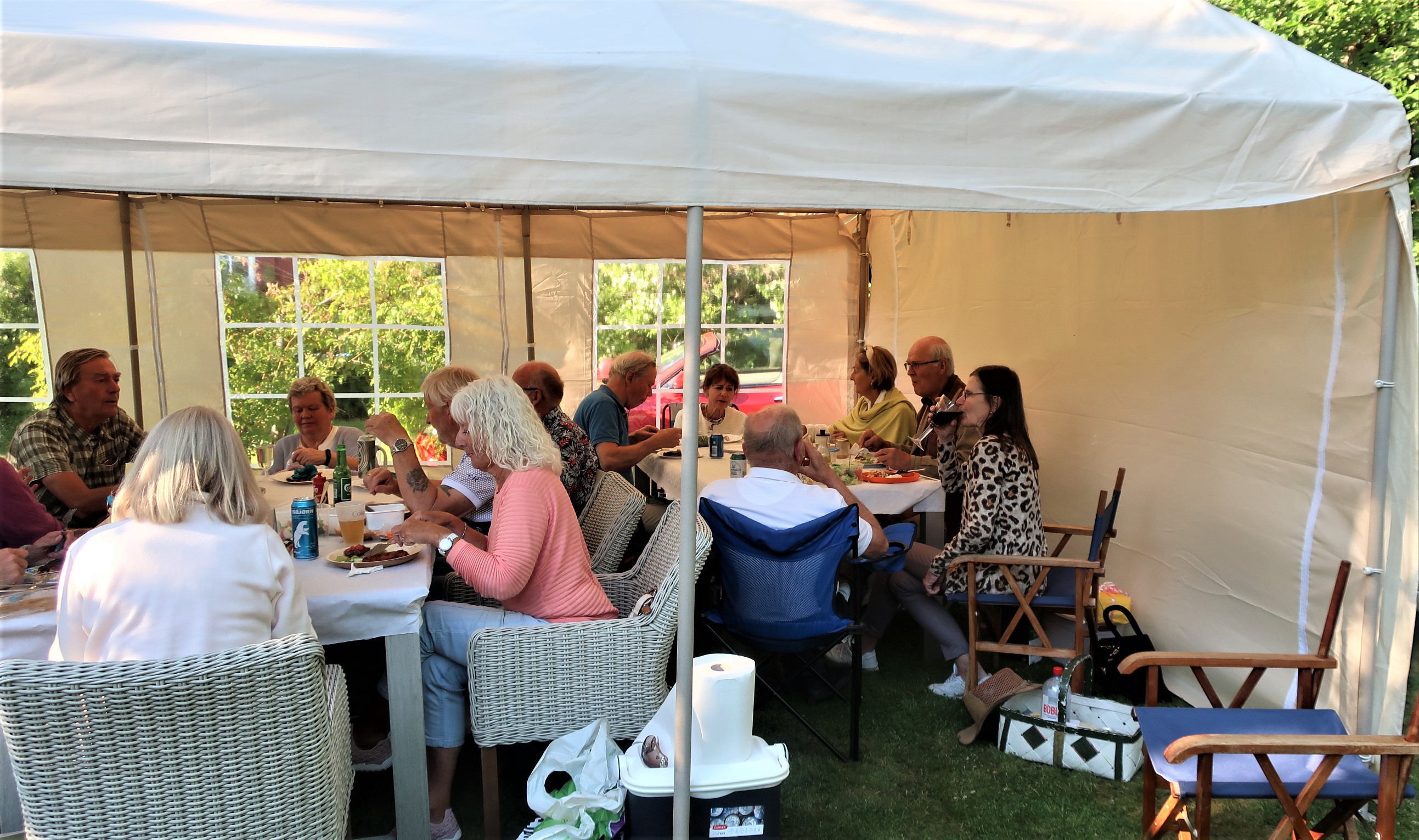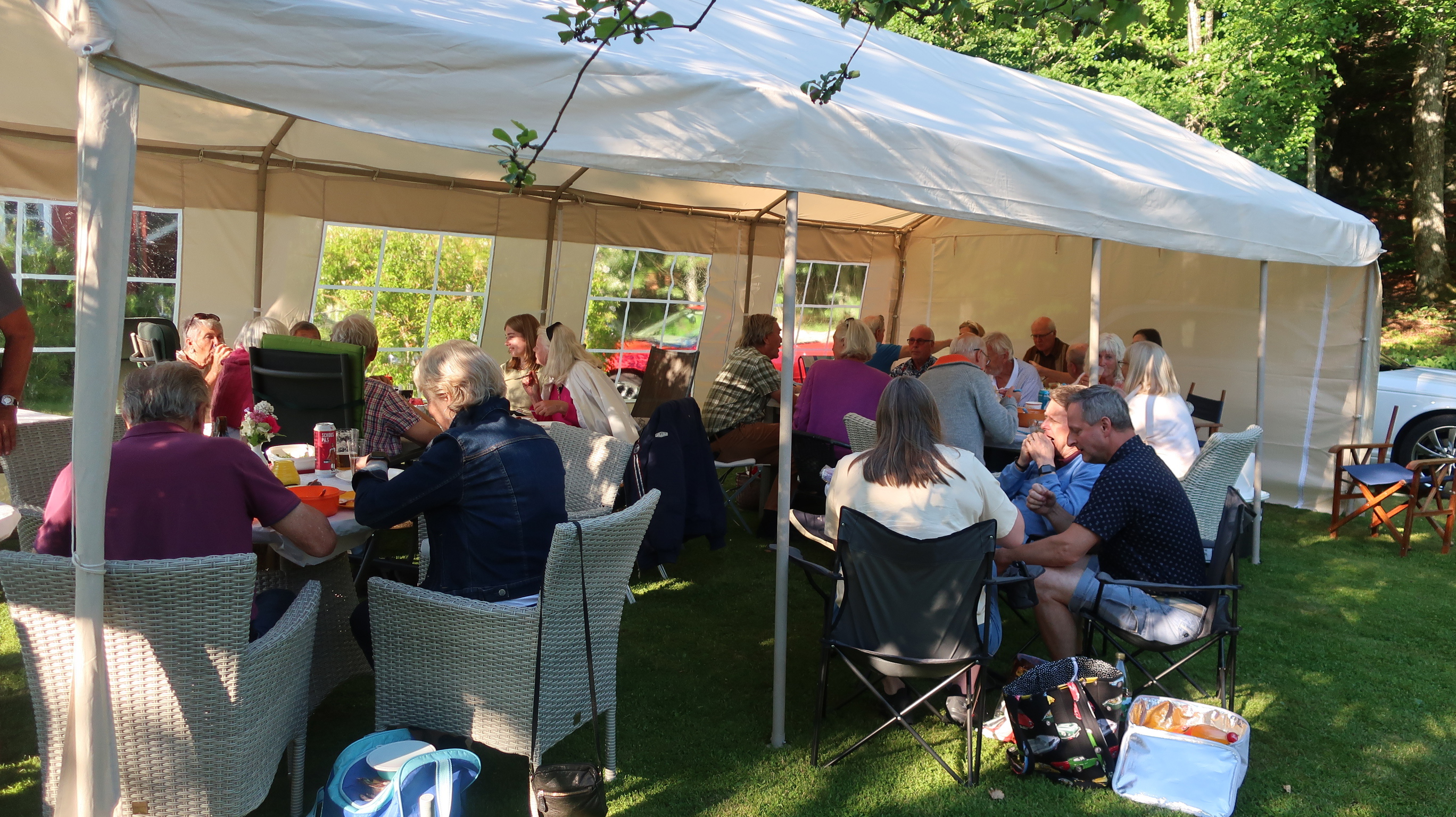 32 deltagere og mange Jaguarer hos Helge og Torhild. Flott vær.