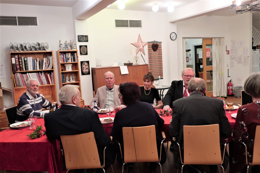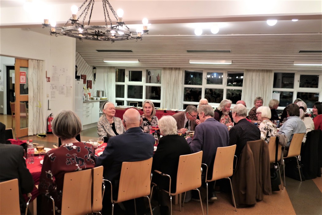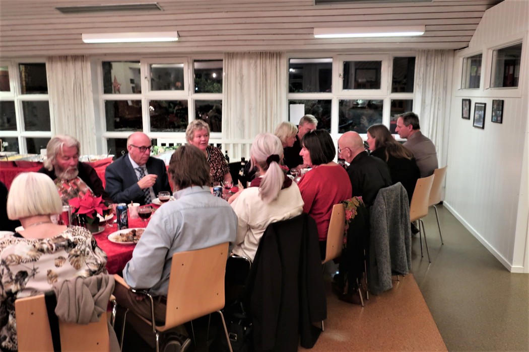 Hei. Da var det tid for Julebord igjen. Vanligvis har det vært hos Per og Berit på Falkensten. Tror vi har hatt 10 Julebord der. Men klubben vokser så vi måtte finne et større lokale og det ble hos Sanitetsforeningen på Borre. Vi var vel 39 påmeldte. Det ble 30 til slutt. Det herjer litt forkjølelse. Maten ble denne gangen levert av Meny i Borreveien. Det var første gangen vi prøvde det med å få levert mat. Ribba var kjempefin med skikkelig sprø svor. Medisterkaker, pølser og riskrem var også veldig bra. Noen savnet tyttebærsyltetøy, så det får vi huske til neste år. Stemningen var høy fra de første som kom før kl 18.00 til de siste gikk kl 01.00. Må takke alle som var der for veldig god oppslutning om loddsalget.